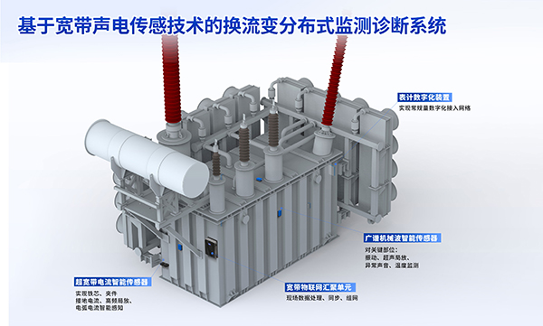 “基于宽带声电传感的换流变分布式监测诊断关键技术及应用”项目针对变压器内部缺陷信号特点,研究宽带声电分布式监测诊断技术,提出了宽带电流检测方法和广谱机械波检测方法,并研制了新型宽带电流传感器和广谱机械波传感器,实现了变压器工频电流、电弧电流、高频脉冲电流的时域和频域特征分析,以及声振信号的全频段波形特征分析和特定频段信号相关性分析,确定变压器声纹和振动类缺陷性质。提出了基于宽带声电传感、同步采集的变压器三维空间缺陷位置及性质分析方法,实现了工频电流、电弧电流、高频脉冲电流、超声波、声音、振动多信号融合分析及缺陷定位。