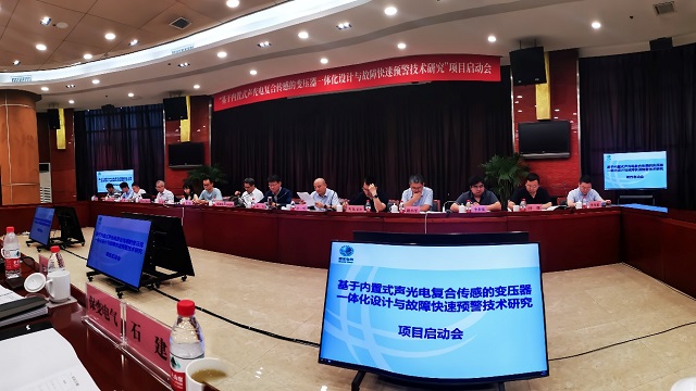 由中国电力科学研究院牵头,联合国网河北省电力有限公司、国网北京市电力公司、保定德赢vwin8868官网新域科技发展有限公司、清华大学深圳国际研究生院承担的国网总部重点科技项目"基于内置式声光电复合传感的变压器一体化设计与故障快速预警技术研究",旨在构建大型电力变压器内部故障分析模型,建立复杂绝缘结构在绝缘油环境中放电强度及危害性的发展规律,异常状态下声、光、电信号的三维空间传播特性与传感方法。解决大型电力变压器内部绝缘故障快速诊断、主动预警和有效防御问题。项目研发期三年,总投资约1500万。2025年6月10日在国网河北省电力公司召开了项目启动会。