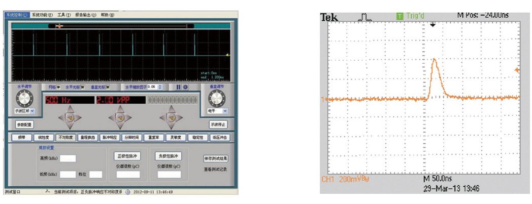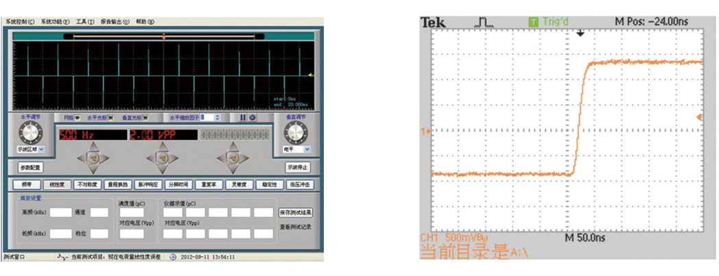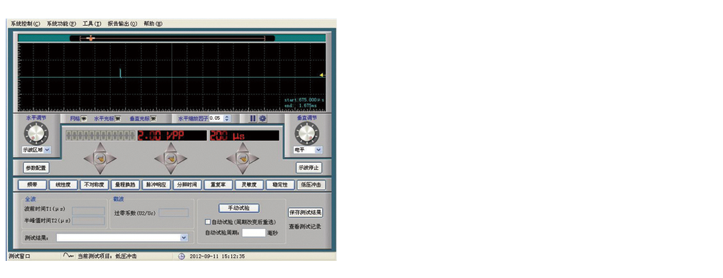 6.100V标准冲击波形,对局部放电检测仪器的通道、测量阻抗进行低电压冲击试验。