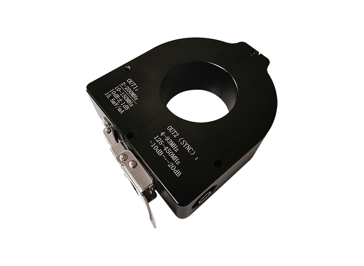 TWHCT-D50高频电流传感器具有低噪声、高带宽的特点。高达100MHz的检测带宽可还原高频脉冲信号;19mV/mA的传输阻抗,可提高电缆局部放电检测的灵敏度。传感器具备IP67的防护等级可长期工作在电缆沟等潮湿环境,适用于电缆等高压设备的局部放电在线监测。